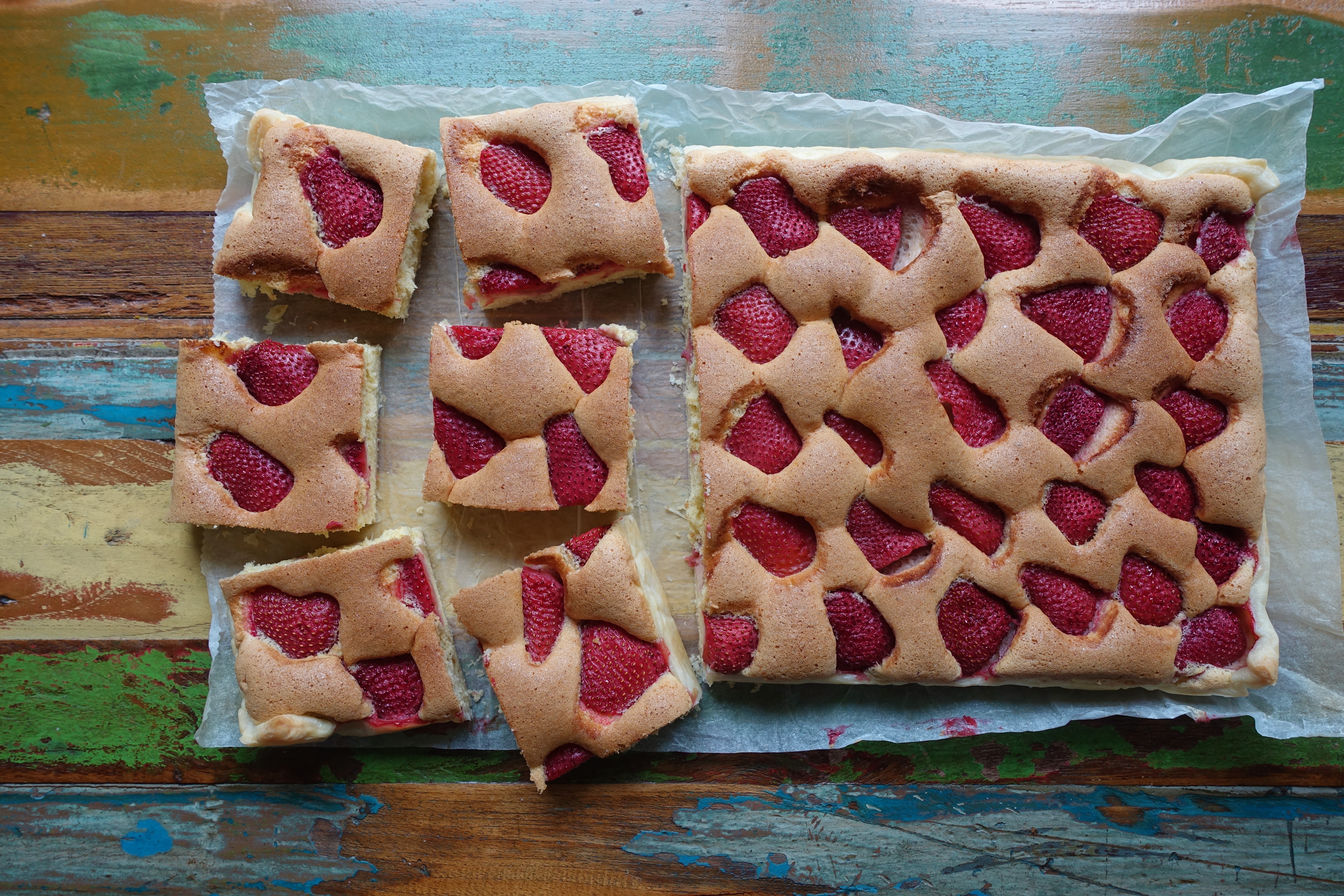 Süße, heimische Superfood-„Beeren“ „schlummern“ sanft in einem fluffigen Bett aus Biskuitteig, der von einer knusprigen Blätterteig-Decke ummantelt wird. Eine Erdbeer-Tarte mit „doppeltem Boden“ sozusagen. Klingt köstlich, oder?