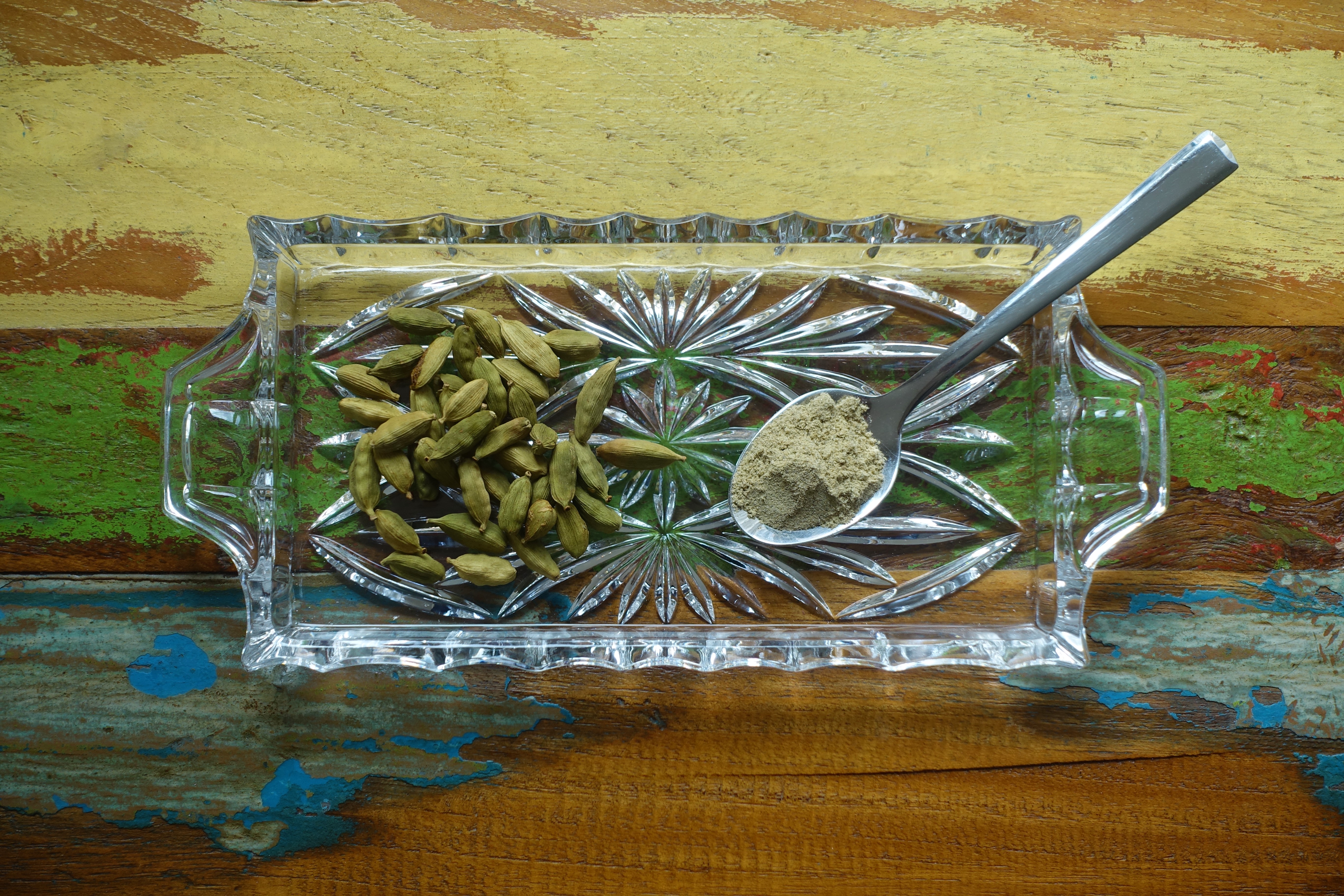 Die zweite besondere Zutat ist Kardamom, ein sehr edles Gewürz, dem man auch heilsame Wirkungen nachsagt. So soll es z.B. bei Magenschmerzen oder Erkältungskrankheiten helfen. Durch seinen zitronigen, leicht scharfen Geschmack passt Kardamom nicht nur zu herzhaften, sondern auch zu süßen Speisen und ist Bestandteil vieler Gewürzmischungen.