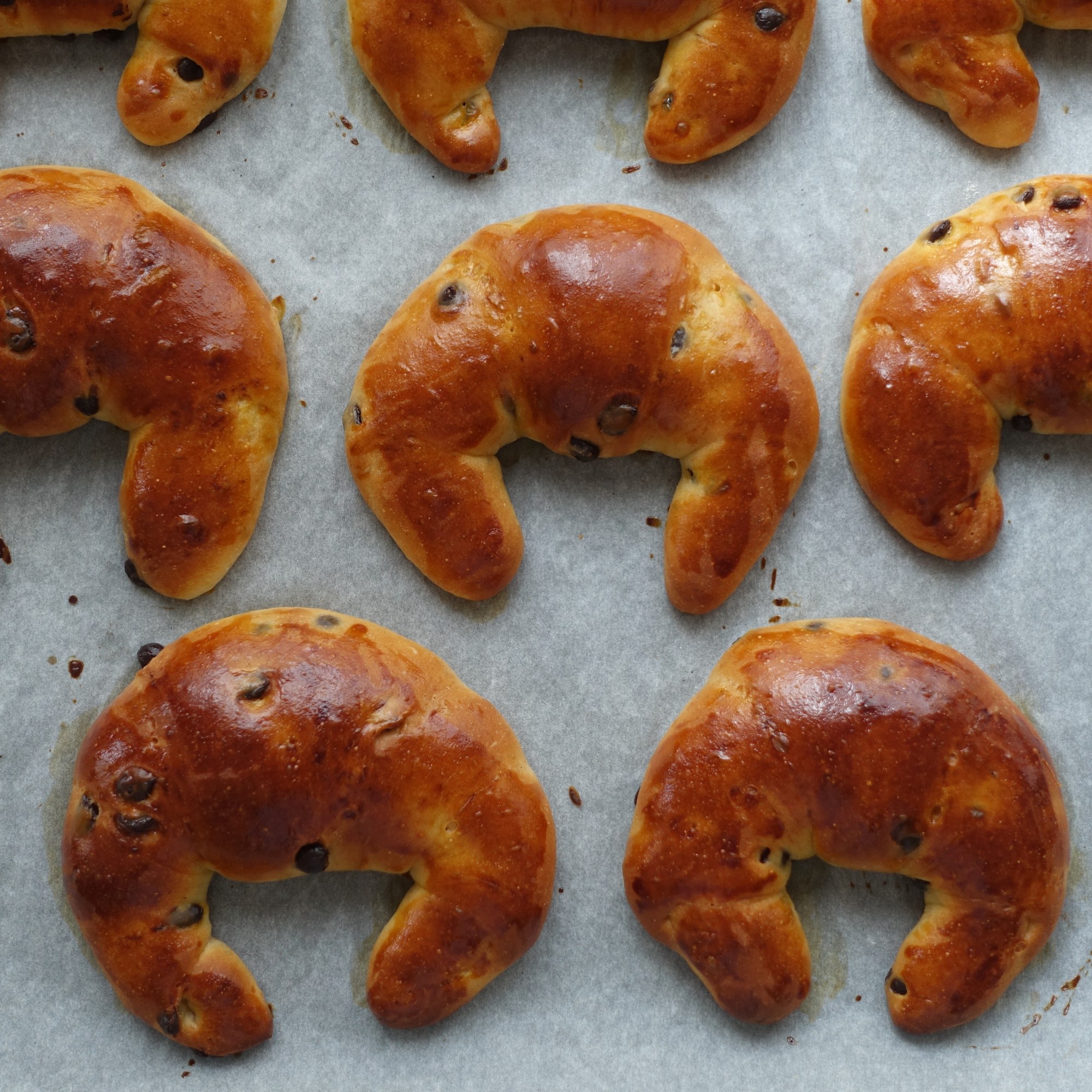 „Süßes mit Dieter“: Frühstücks-Mascherl, Croissants und Schoko-Kipferl.