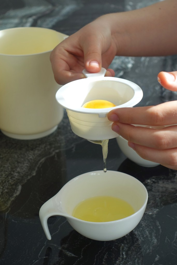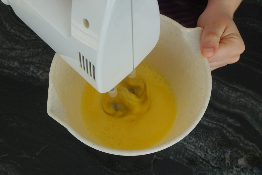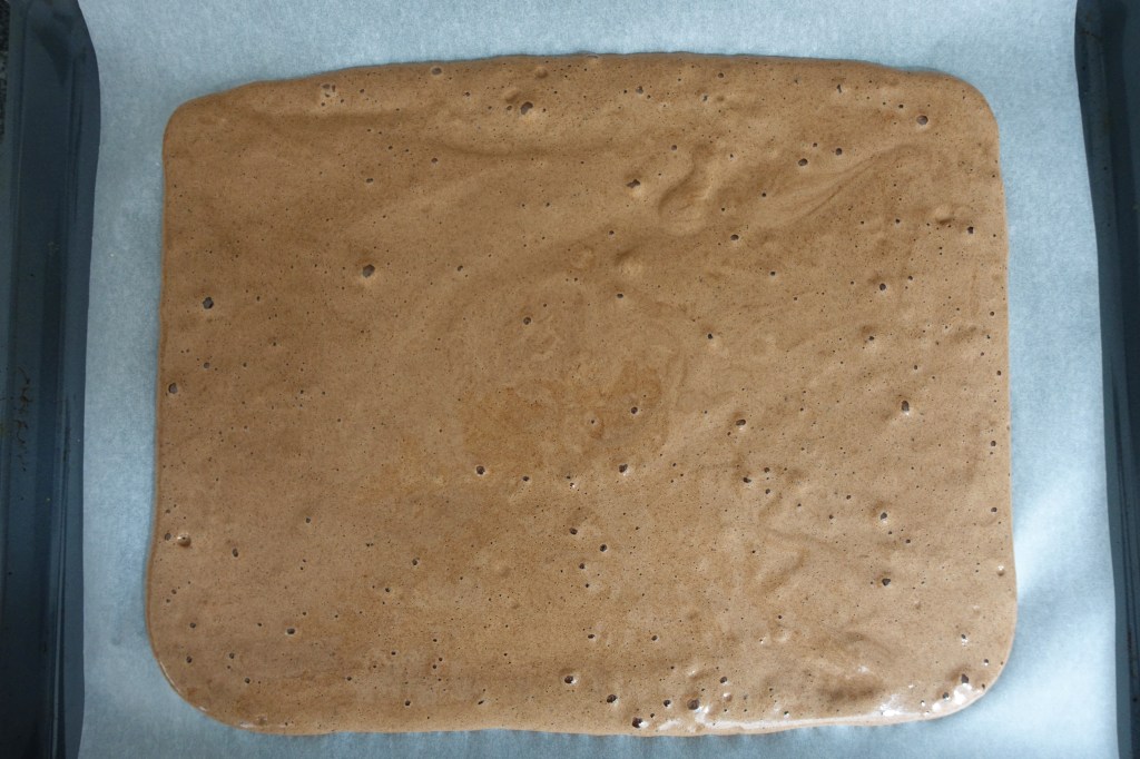 Der Teig für die gerollte Kakaoschnitte wird wie der, der im Milchschnitten-Rezept angegeben ist, zubereitet.