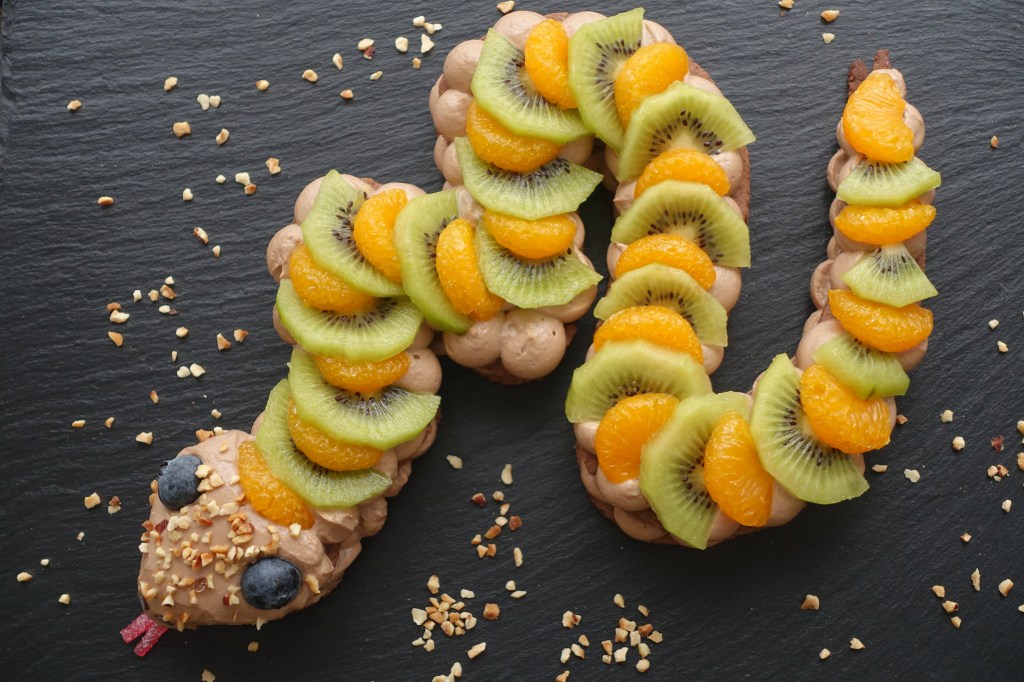 - 1 (halbe) Konfektkugel als Fledermaus-Nase (ersatzweise kann auch eine halbe Weintraube, eine Heidelbeere/Blaubeere oder 1 Himbeere usw. verwendet werden) und 2 Schokotropfen als Pupillen 👀