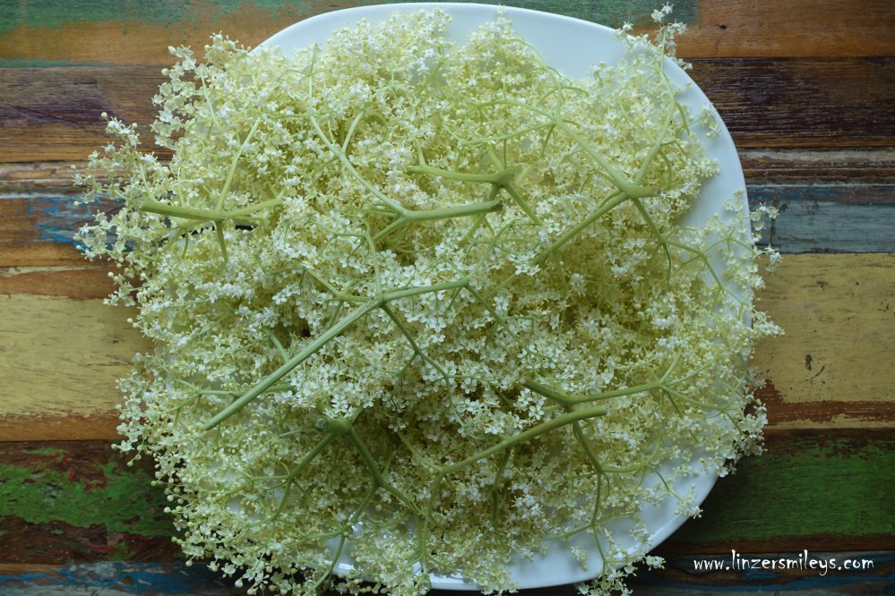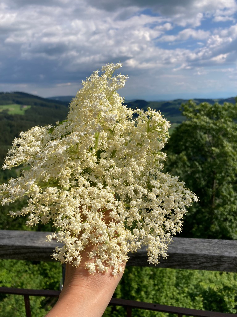 Ein paar Hollerblüten habe ich mit nach Hause genommen – damit werde ich Holunderblütensirup zubereiten 😊!