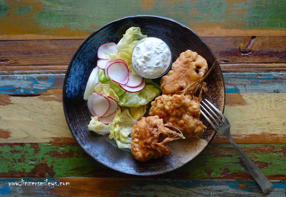 … und knusprig gebackene Hollerstrauben. So lecker 😊!