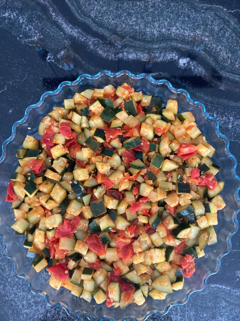 - 3 schlanke, feste Zucchini, in kleine Würfel geschnitten