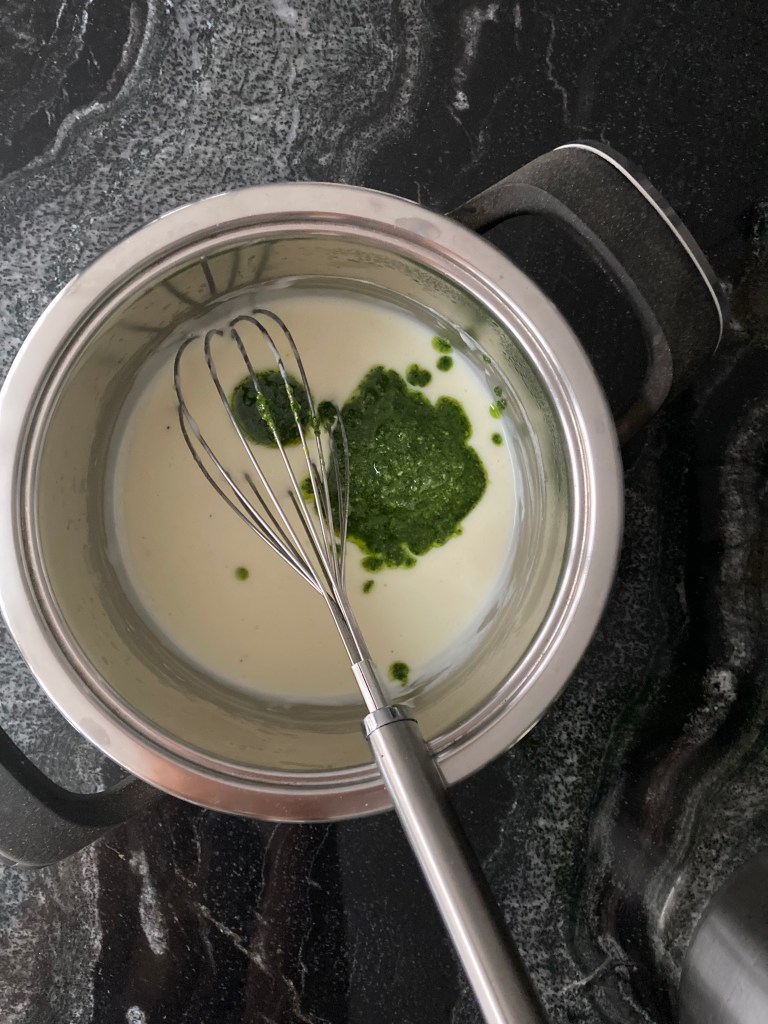 - 2-3 EL Pesto (nach Belieben aus Basilikum, Dille, Rucola oder – wie hier – aus Petersilie*)