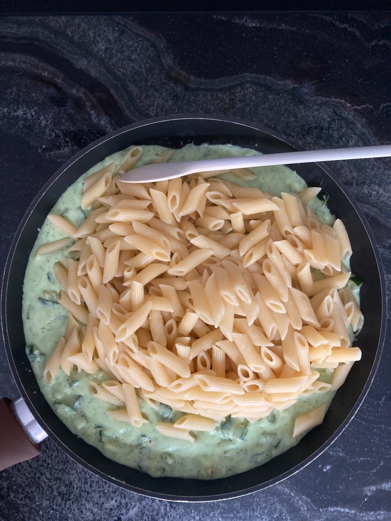Ofennudeln in GRÜN mit Pesto & Zucchini – sooo köstlich, sag‘ ich euch 🤗!