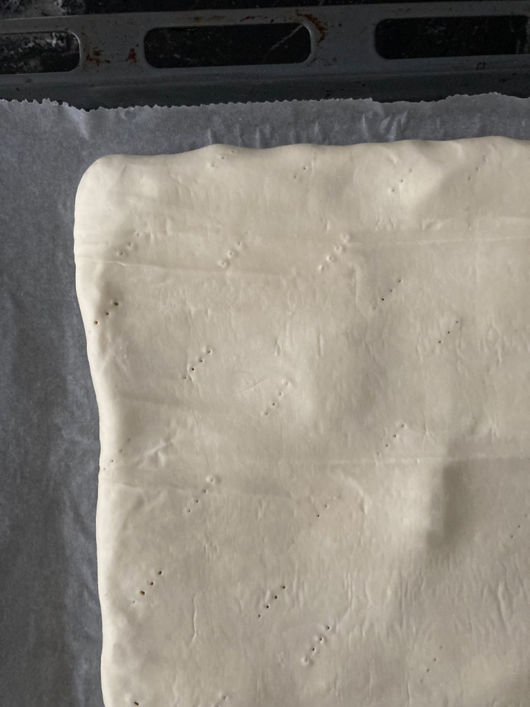Den Blätterteig entrollen und mit einer Gabel mehrmals einstechen.