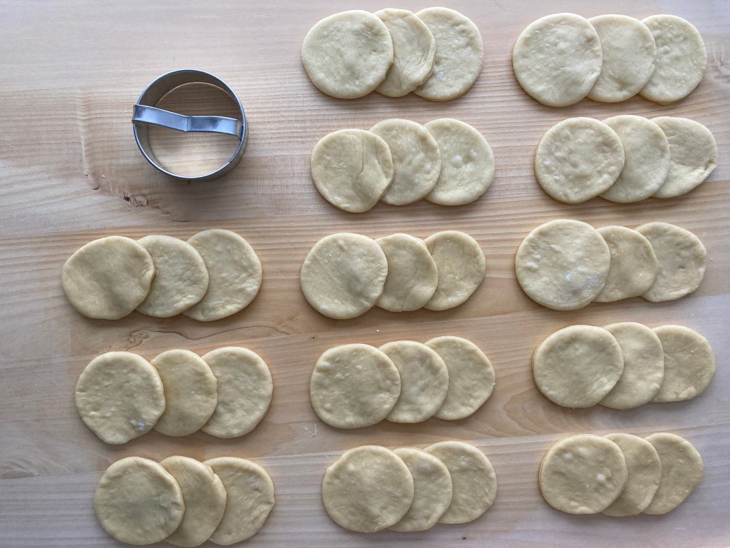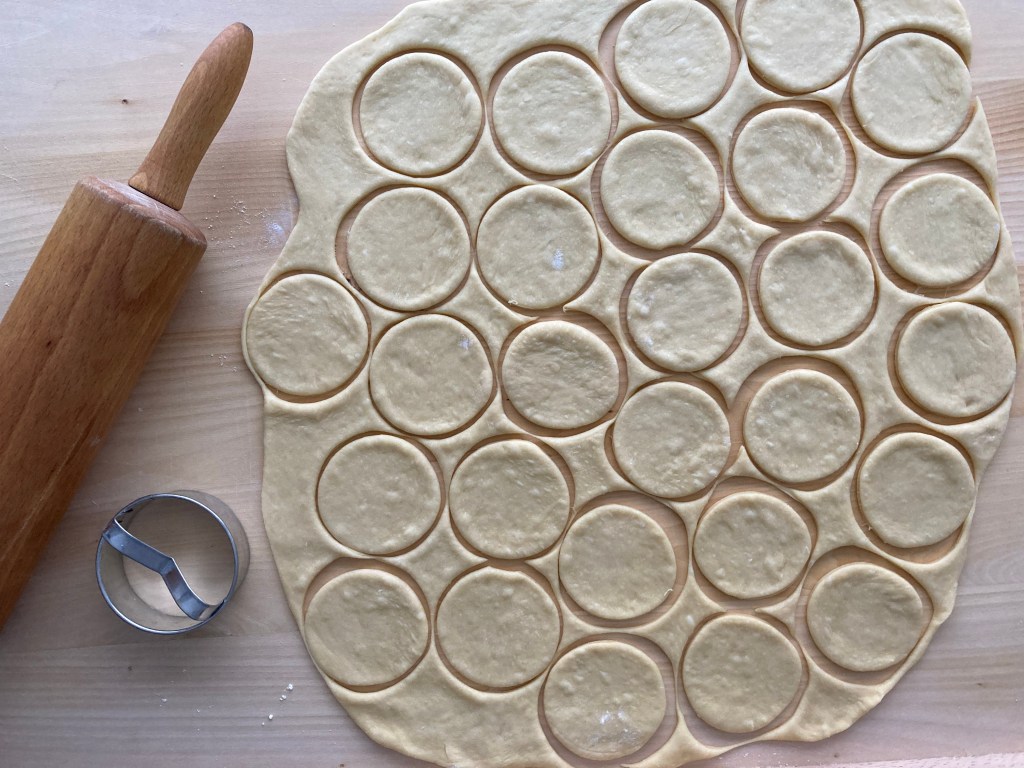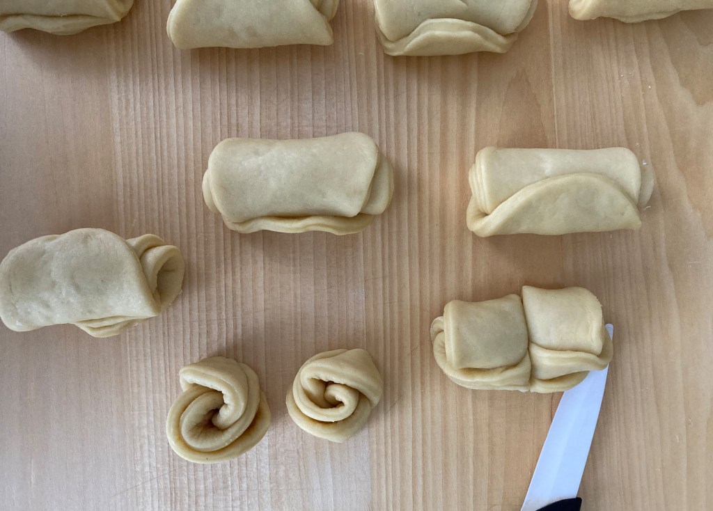 Diese Löckchen sind so hübsch, ich muss sie unbedingt nachbacken! Ich frage mich, ob man nicht auch Marmelade auf jedes einzelne runde Plättchen streichen könnte vor dem Einrollen…