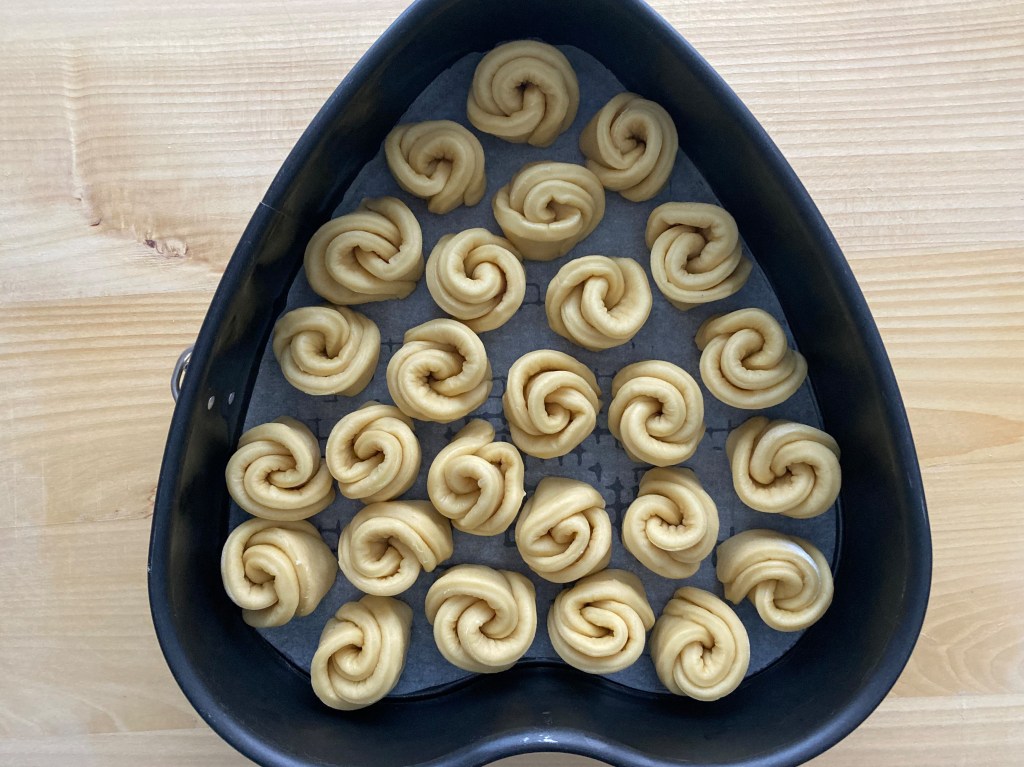 Brioche Bouclettes in Herzform, Lockenbrioche, Löckchen, verlockend köstlich, Rosenbrioche, mit Liebe backen, Herz, Hefeteigröschen, Rosen, Backkunst, Valentinstag, Valentine's Day, San Valentino, pan dolce, französisch backen, Kunstwerk aus dem Backofen, von Daniela Terenzi #linzersmileys