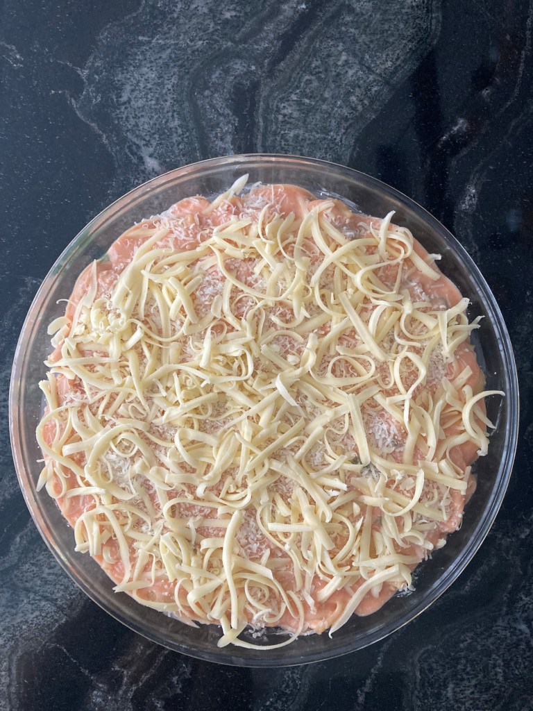 - 1 Auflaufform (nach Belieben rund oder eckig), mit Butter eingefettet und mit Semmelbröseln/Paniermehl ausgestreut
