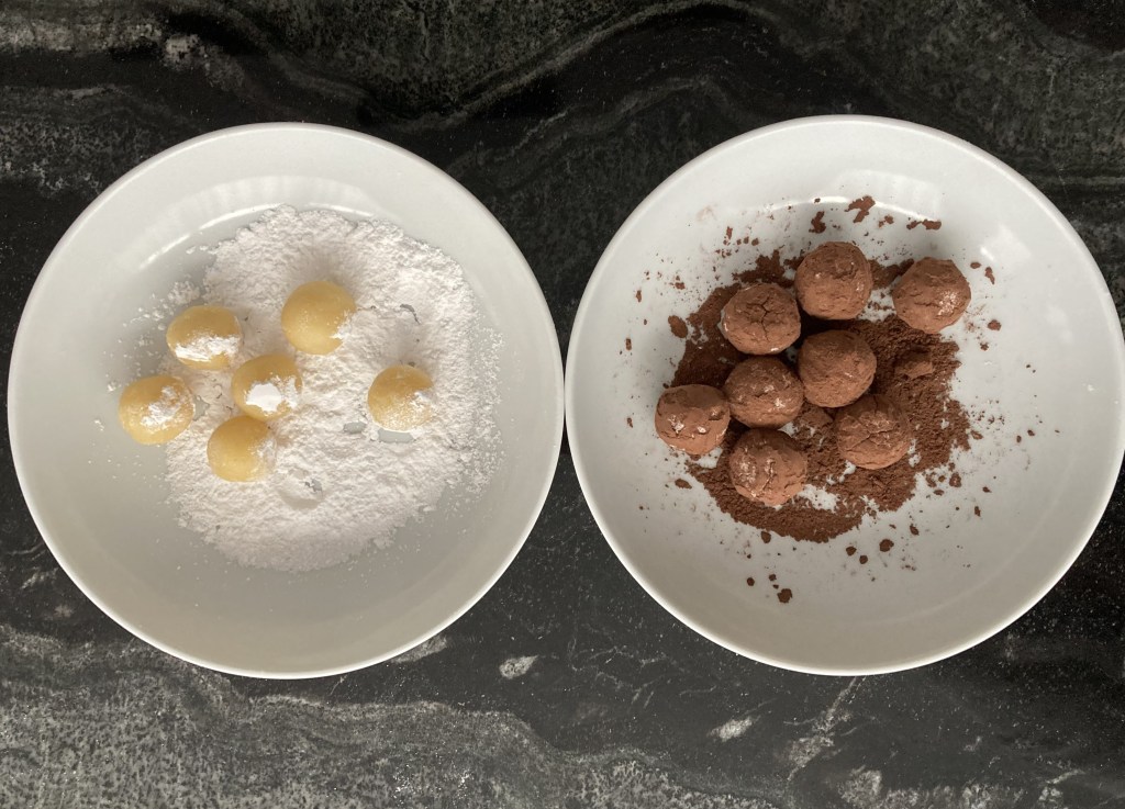 Vor dem Servieren nach Belieben entweder in Staubzucker und/oder in Backkakao wälzen (6) – oder einfach so genießen 😉.